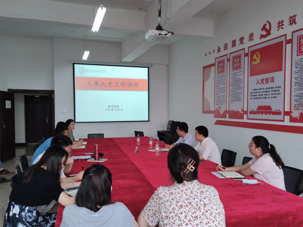 5月31日下午,校长助理郑行忠莅临伟德官网开展人事人才工作专题调研并召开座谈会,校人力资源部有关领导陪同调研。教育学院院长娄全福、副院长张丽芳、各教研室主任、各科室负责人以及马克思主义学院相关人员参加此次调研会议。