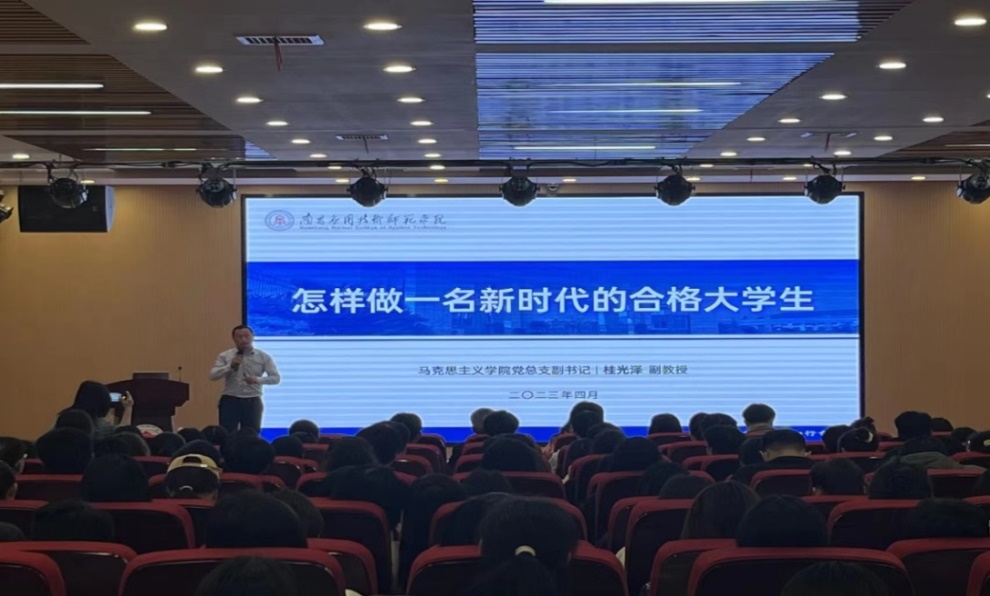 首先,马克思主义学院党总支副书记桂光泽发表讲话,他表示在本学期来到马克思主义学院主持工作是新的起点亦是新的征程,在未来希望能够与大家共同进步、砥砺前行。接着,桂光泽书记为同学们讲述了一场生动的思政课——怎样做一名新时代的合格大学生,他强调大学生要树立正确的价值观,励志在新时代做有为青年,并且引用习近平总书记的话“广大青年要做社会主义核心价值观的坚定信仰者、积极传播者、模范践行者,向英雄学习、向前辈学习、向榜样学习,争做堪当民族复兴重任的时代新人”对学生们进行勉励。