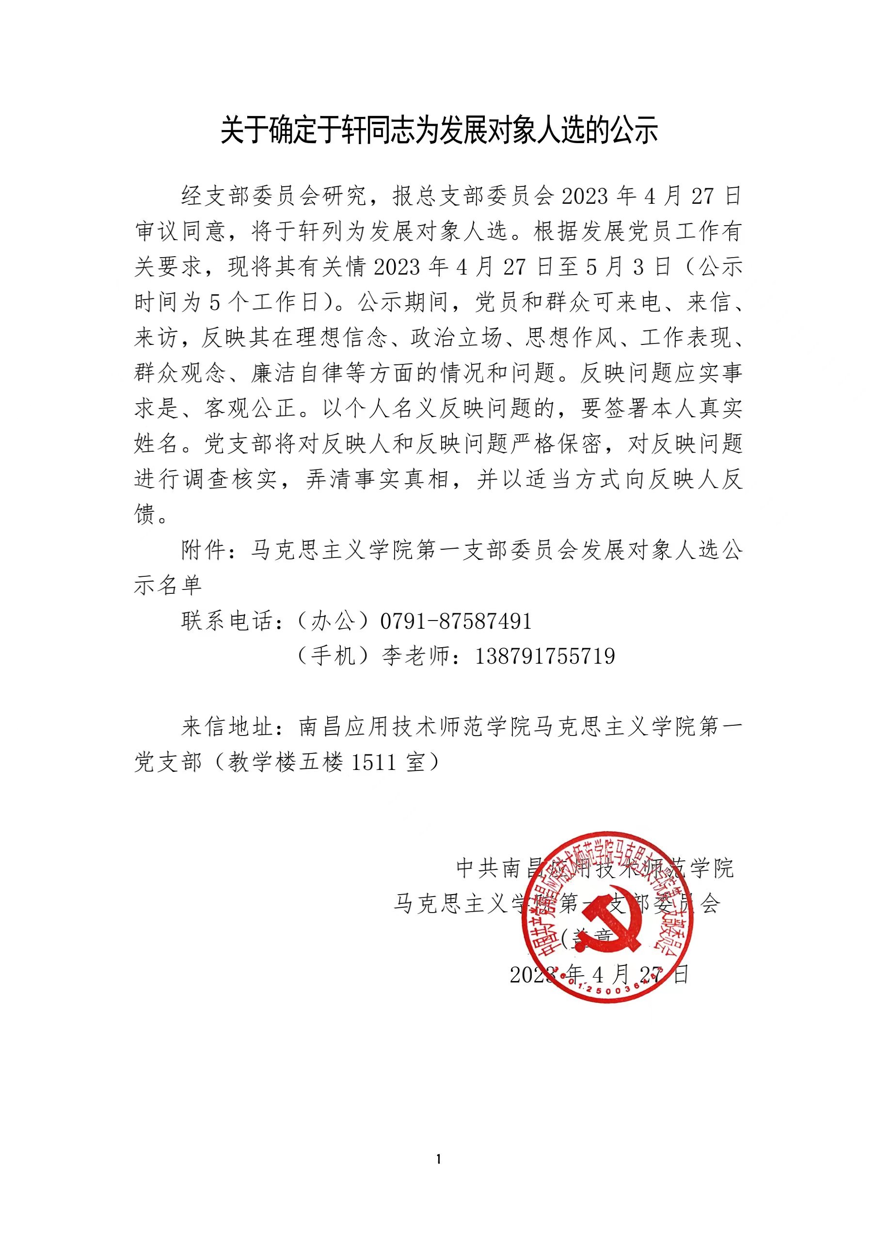 首页栏目 通知公告 学院新闻 习近平思想学习专栏 主题教育学习 院长书记信箱 您现在的位置是:首页 > 首页栏目 > 通知公告 关于确定于轩同志为发展对象人选的公示 管理员2023-04-297831 上一篇 关于确定刘洋等3位同志为发展对象人选的公示 下一篇 马克思主义学院第一支部委员会入党积极分子备案名单