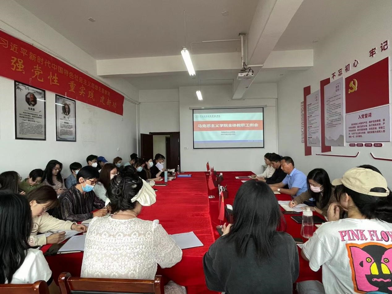 2023年5月10日14:00,马克思主义学院在1511会议室召开了全体教职工例会。院长文道贵、副院长卢林保,各教研室主任、各科室负责人以及学院全体教职工参加,会议由党总支副书记桂光泽主持。