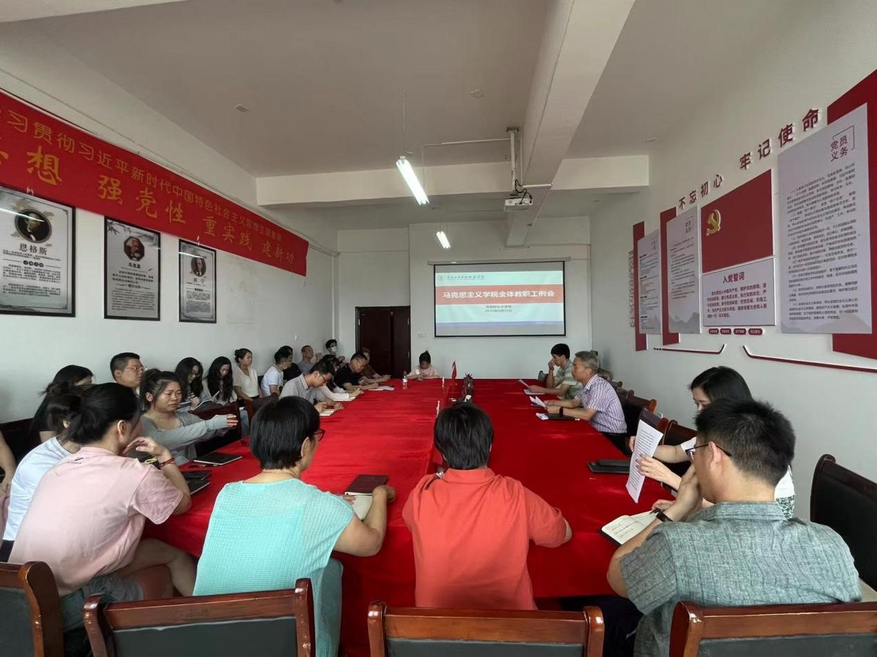2023年5月31日14:00,马克思主义学院在1511会议室召开了全体教职工例会。院长文道贵、副院长卢林保,各教研室主任、各科室负责人以及学院全体教职工参加,会议由院长文道贵主持。