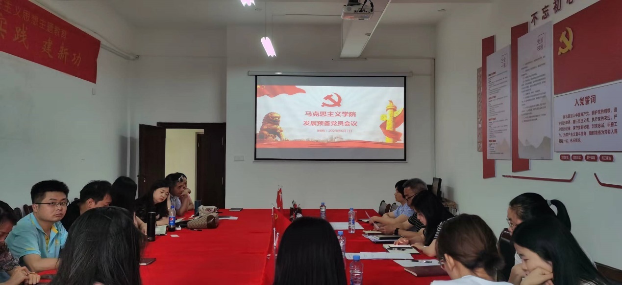 6月7日下午14:00,马克思主义学院第一党支部在教学楼1511党员活动室召开发展对象转预备党员会。会议由总党支书记文道贵同志主持,马克思主义学院全体教师党员参会。