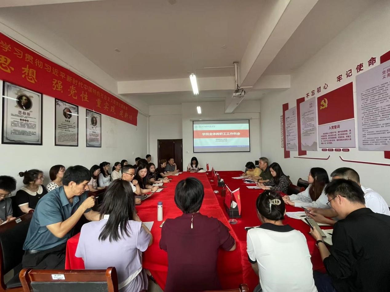 6月14日下午,马克思主义学院在1511会议室召开了第十三次全体教职工例会。院长、书记文道贵,党总支副书记李婷,副院长张丹,各教研室主任,各科室负责人以及学院全体教职工参加,会议由院长、书记文道贵主持。