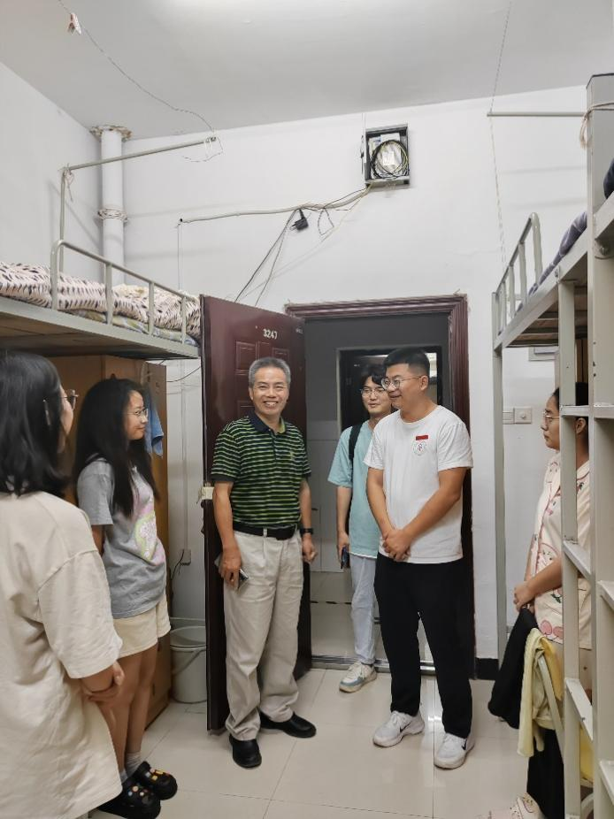 通过走访宿舍听取学生心声,学校领导和老师们进一步了解了学生的报到情况以及实际生活需求,拉近了和同学们的距离,打通了师生心灵同频共振的渠道。