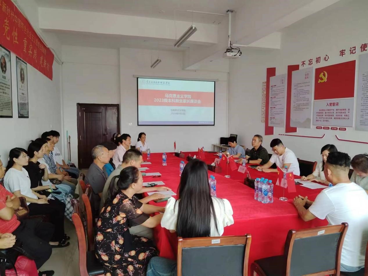 为进一步加强学校和新生家长间的密切联系,构建家校沟通渠道,家校之间形成教育合力,促进学生健康成长,9月2日下午,马克思主义学院利用迎新工作间隙,在1511会议室召开2023级本科新生家长座谈会。院长文道贵,党总支书记张欣康,党总支副书记李婷,副院长张丹,各科室、教师代表参加了座谈会。座谈会由党总支书记张欣康主持。