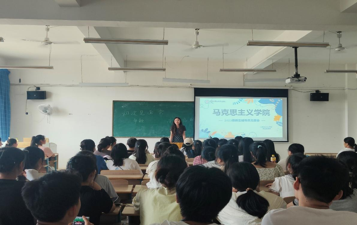 9月3日下午四点,马克思主义学院在教学楼举行2023级新生和辅导员见面会。思政1、2、3班和法学1班全体新生和辅导员邹颖老师参加了见面会。此次见面会在轻松、亲切的氛围中进行,旨在为新生们营造良好的学习生活环境,为新生们打开了与辅导员互相了解、互相交流的窗口。
