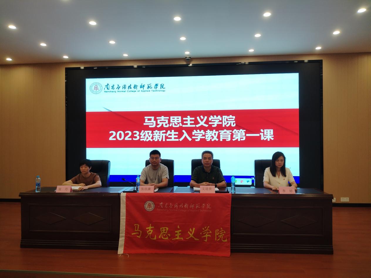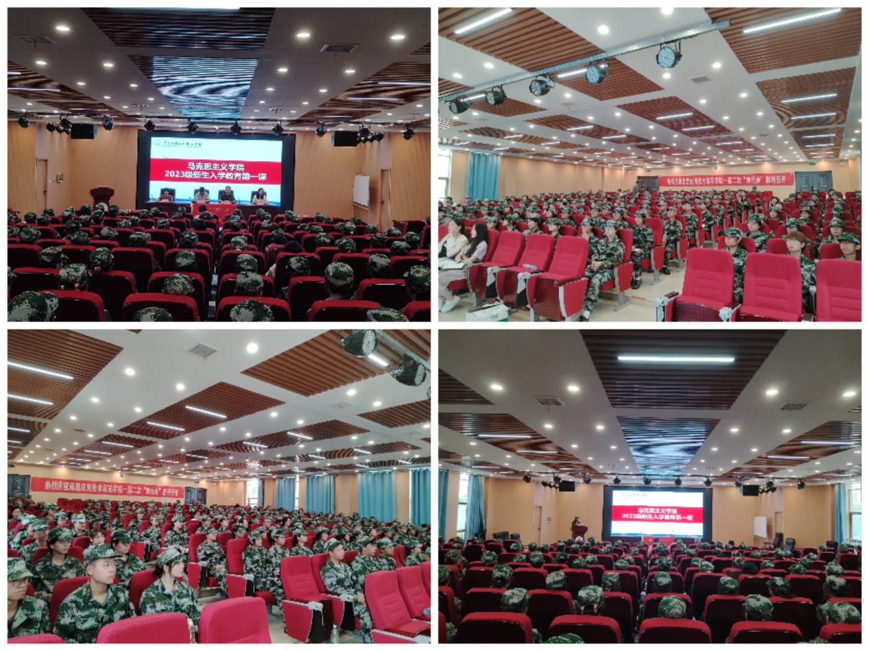 为进一步加强新生思想引领,教育引导新生尽快适应校园环境、全面了解学校(院)情况、了解大学专业学习内容、明确学习新目标,9月5日下午,马克思主义学院在2312学术报告厅召开2023级新生入学教育第一课。院长文道贵,党总支书记张欣康,党总支副书记李婷,副院长张丹,学生科、团委、综合办公室代表及新生辅导员以及全体大一新生参加本次会议。会议由党总支副书记李婷主持。