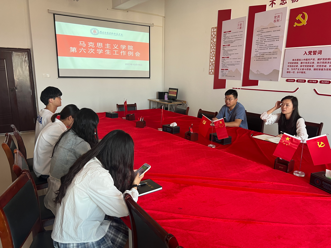2023年10月18日,为扎实做好各项学生管理工作、巩固学生方面安全稳定、提高学生工作效率,马克思主义学院召开“第六次学生工作例会”,本次会议由马克思主义学院党总支书记张欣康主持,学院党总支副书记李婷及各专兼职辅导员参加。