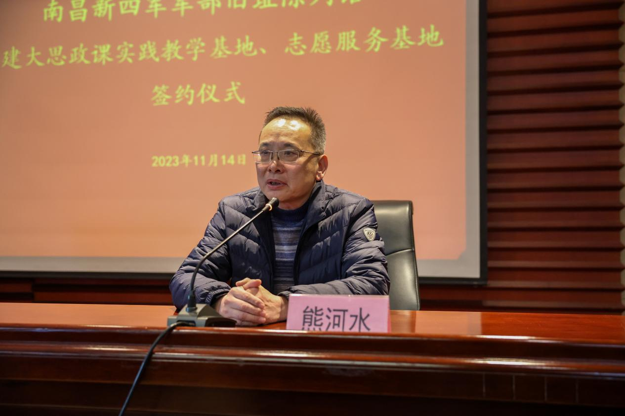 熊河水向大家详细介绍了新四军的发展历史,并表示此次合作共建“大思政课”实践教学基地意义重大,是双方互相交流学习的一次机会,是尊重历史、崇敬英雄的一次生动体验,希望双方在以后的交流共建活动中,创造更多有特色、有亮点的实践活动,激励青年学生弘扬与传承伟大的抗战精神。