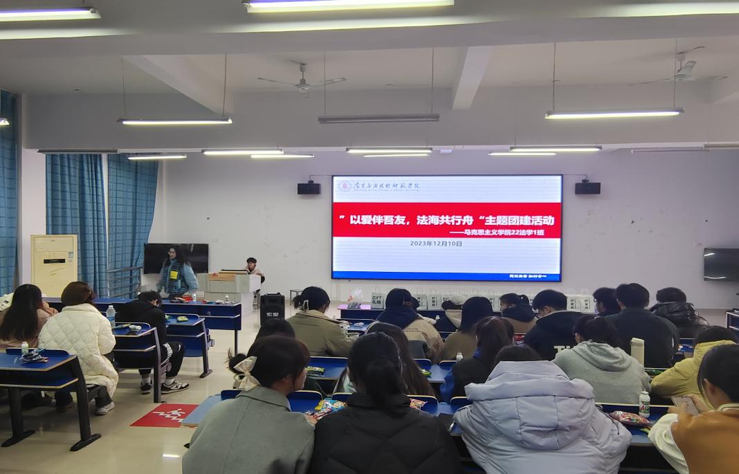 2023年12月10日,为了解师生诉求,征集发展建议,夯实群众基础,为即将召开的学校第一次党员大会营造平安和谐的环境,马克思主义学院22法学一班开展了“以爱伴吾友,法海共行舟”为主题的班级团建活动,辅导员吴昱杉出席活动。通过开展此次团建活动,增强了班级集体意识,营造积极向上、团结友爱的班级文化氛围,激发了同学们对学习、生活的热情,绽放了青春活力。