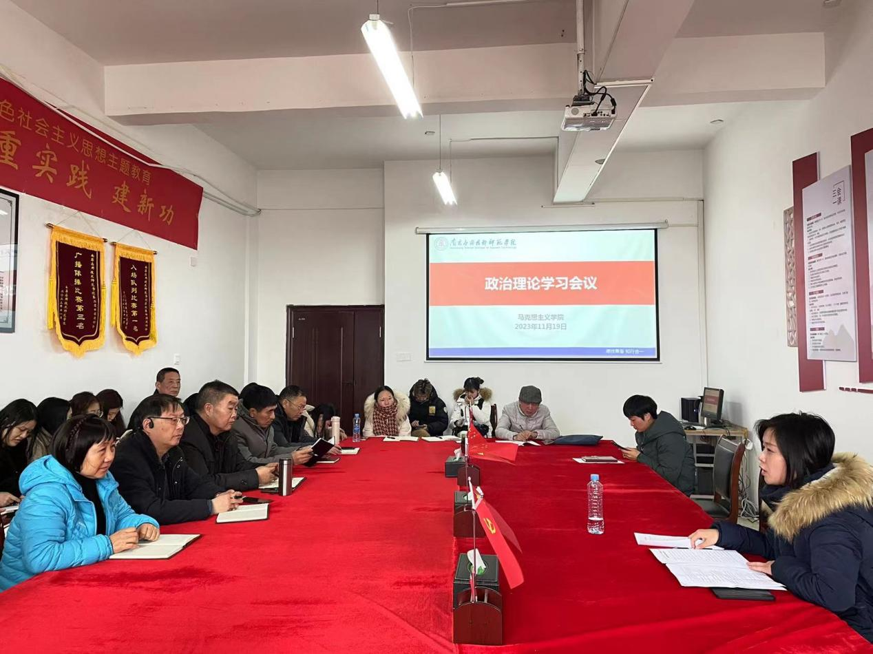 12月19日下午,学院在1511会议室召开了政治理论学习会议。院长文道贵、党总支书记张欣康、副院长张丹、党总支副书记李婷及全体教职工参加此次会议,会议由院长文道贵主持。