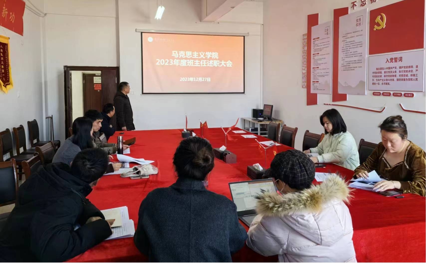 为了总结班主任的工作成果与经验,反思自身存在的不足之处以及规划新学年的工作方向与目标,加强师生沟通,增进彼此了解。马克思主义学院于2023年12月27日下午1点在1511会议室召开了2023年度班主任述职大会,班主任分别就自己过去一年的工作进行了详细述职。学院党总支书记张欣康、学生科科长康柠以及全体带班班主任参会,由党总支副书记李婷主持会议。