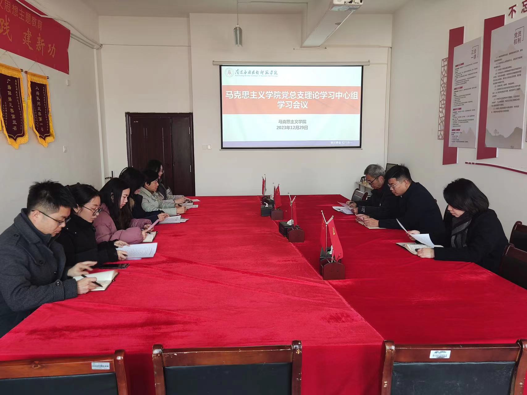 12月29日,马克思主义学院召开党总支理论学习中心组学习会议,集中学习习近平总书记重要讲话和重要指示批示精神。学院党总支书记张欣康主持学习会并讲话,党总支全体委员参加,机关党委书记朱蕾应邀列席旁听。