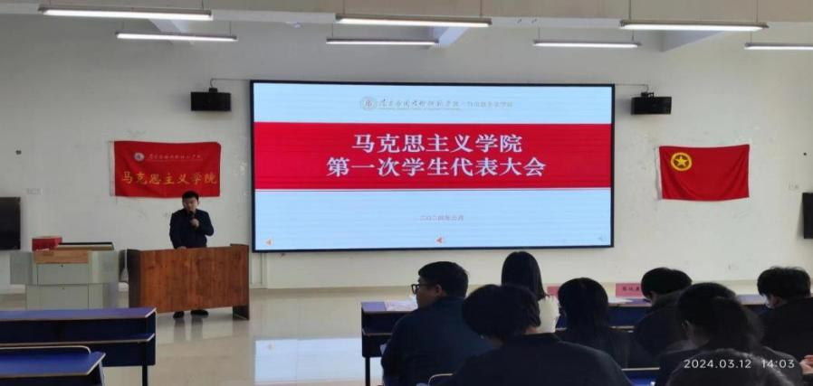 为深入学习贯彻落实学校第一次党员大会精神,总结交流过去伟德官网学生工作经验,研究确定今后一年伟德官网学生会工作目标,推动学院高质量发展,3月12日下午,马克思主义学院第一次学生代表大会在教学楼2311教室召开,马克思主义学院党总支书记张欣康、副书记李婷出席会议,学生代表参加会议,学院团委老师胡琛主持会议。