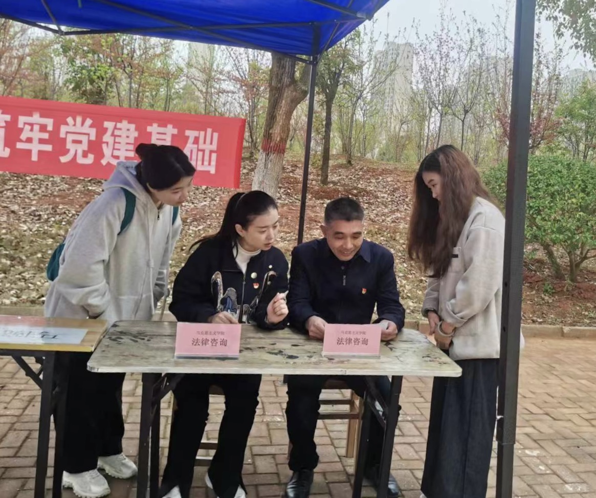 活动现场专门设立了法律咨询台,为师生解答日常生活中遇到的法律问题。并通过悬挂横幅、制作宣传海报、发放普法反诈纪念品等多种方式,向师生宣传有关法律法规知识。