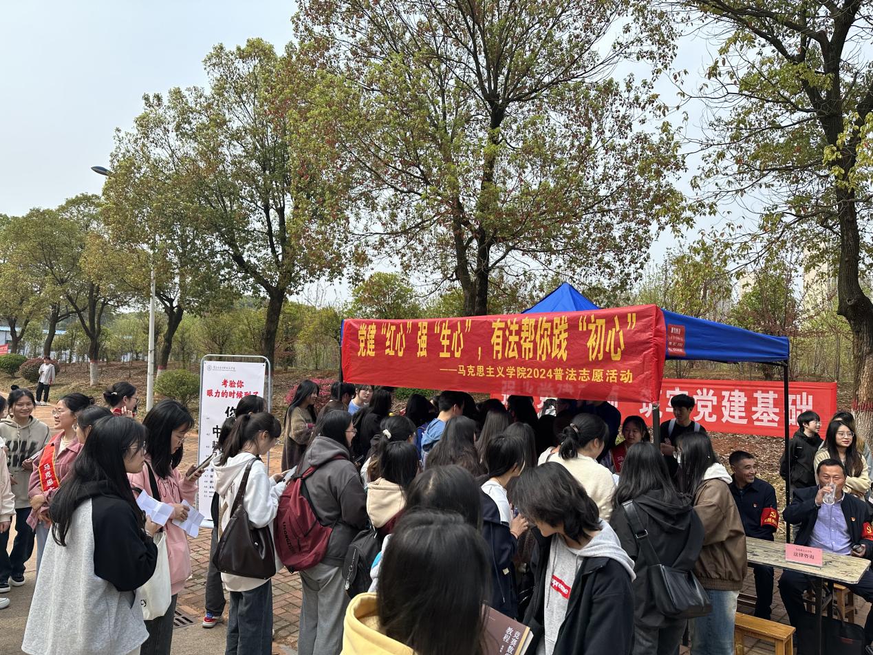 为深入学习贯彻习近平法治思想,大力弘扬法治精神,积极践行雷锋精神,马克思主义学院党总支组织部分党员师生于3月27日在学校教学楼前开展以“党建‘红心’强‘生心’,有法帮你践‘初心’”为主题的普法志愿服务活动。