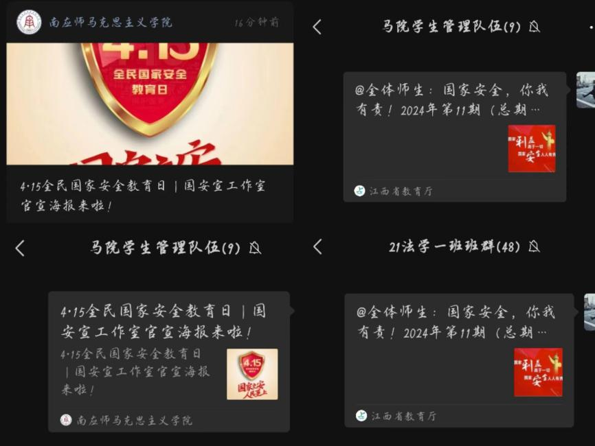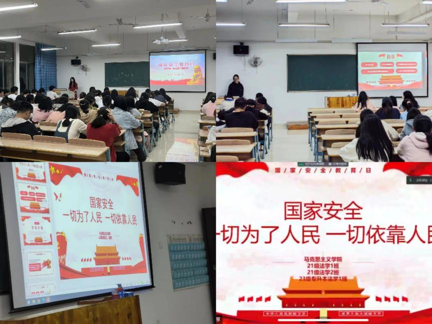 线下各辅导员积极开展全民国家安全教育日宣传主题班会,让同学们充分认识到,在当今网络高度发达的时代,国家安全离我们一点也不遥远,所以人人都应当参与筑牢国家安全防线。作为马克思主义学院的学生需更加明确接下来要全方位、多维度体悟习近平总书记提出的总体国家安全观的深厚底蕴,不断增强贯彻落实总体国家安全观的自信自觉。