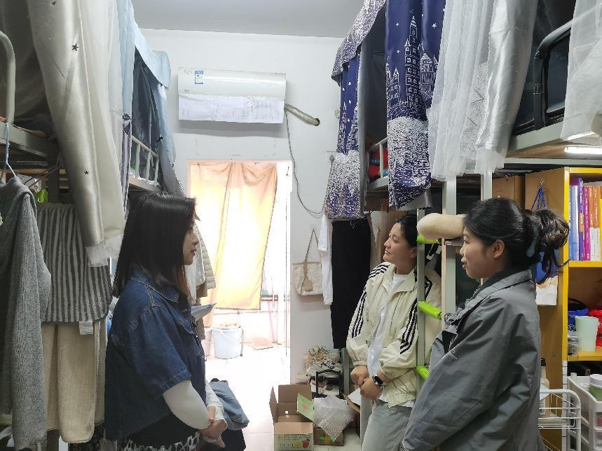 2024年5月8日下午,马克思主义学院党总支书记张欣康、副书记李婷及毕业班辅导员再次走访毕业生宿舍,与毕业生们亲切交谈,倾听学生对未来的规划及自我职业发展方向。