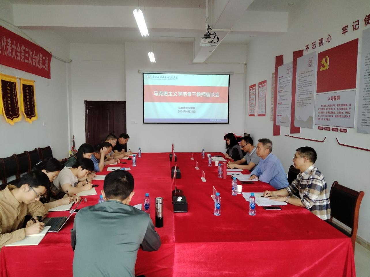 为深入贯彻落实中央关于加强马克思主义学院建设的基本精神,深入了解学院教师教育教学工作现状,切实推进学院教学质量,伟德官网于4月28日在1511会议室召开骨干教师座谈会。校党委副书记蓝贤发出席会议并讲话。
