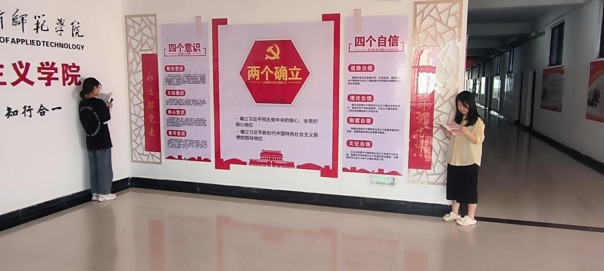 此次活动由马克思主义学院星火宣讲团组织,全体宣讲团成员参加活动。经老师推荐,选取《习近平新时代中国特色社会主义思想概论》作为晨读书籍,要求同学们认真阅读原文,提高文化素养。为营造浓厚的阅读氛围,在晨间,成员们聚集到走廊一起读书,琅琅书声传递了同学们的朝气蓬勃,在清晨阳光的照耀下形成了一道靓丽的风景线。