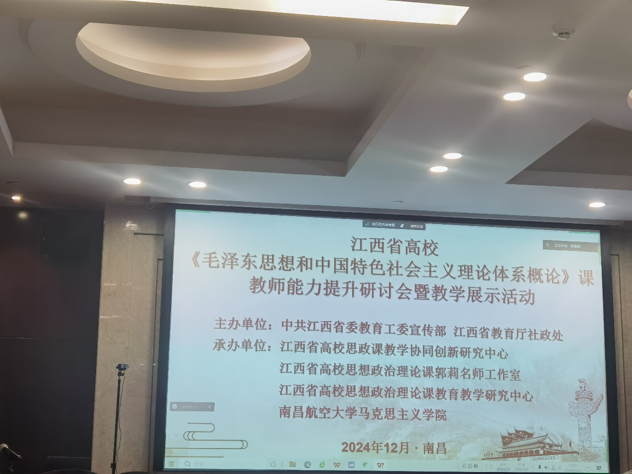 2024年12月1日,由中共江西省委教育工委宣传部、江西省教育厅社政处主办的《毛泽东思想和中国特色社会主义理论体系概论》课教师能力提升研讨会暨教学展示活动在南昌市前湖酒店举行。伟德官网思政教师刘东方参加了活动。