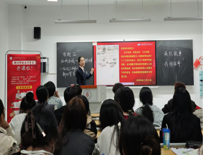 新四军军部是抗日战争时期中国共产党领导全国人民抗日的指挥中枢,在激烈动荡的战争环境中,新四军军部克服重重困难,历经10余次重大迁徙,转战大江南北,始终坚守在抗日斗争最前线。军部的每一次播迁,都留下了可歌可泣的感人故事。2024年11月29日,在赣新校区沁苑2教A座A204教室,由BV伟德官方网站马克思主义学院与南昌新四军军部旧址陈列馆联合开发的校本特色大思政课《新四军抗日斗争史》第五专题围绕“新四军军部变迁”主题如期开课。本次授课由马克思主义学院石仁凤老师和南昌新四军军部旧址陈列馆金牌讲解员熊昕共同完成,两位老师向同学们讲述了一个个鲜为人知的英烈故事。