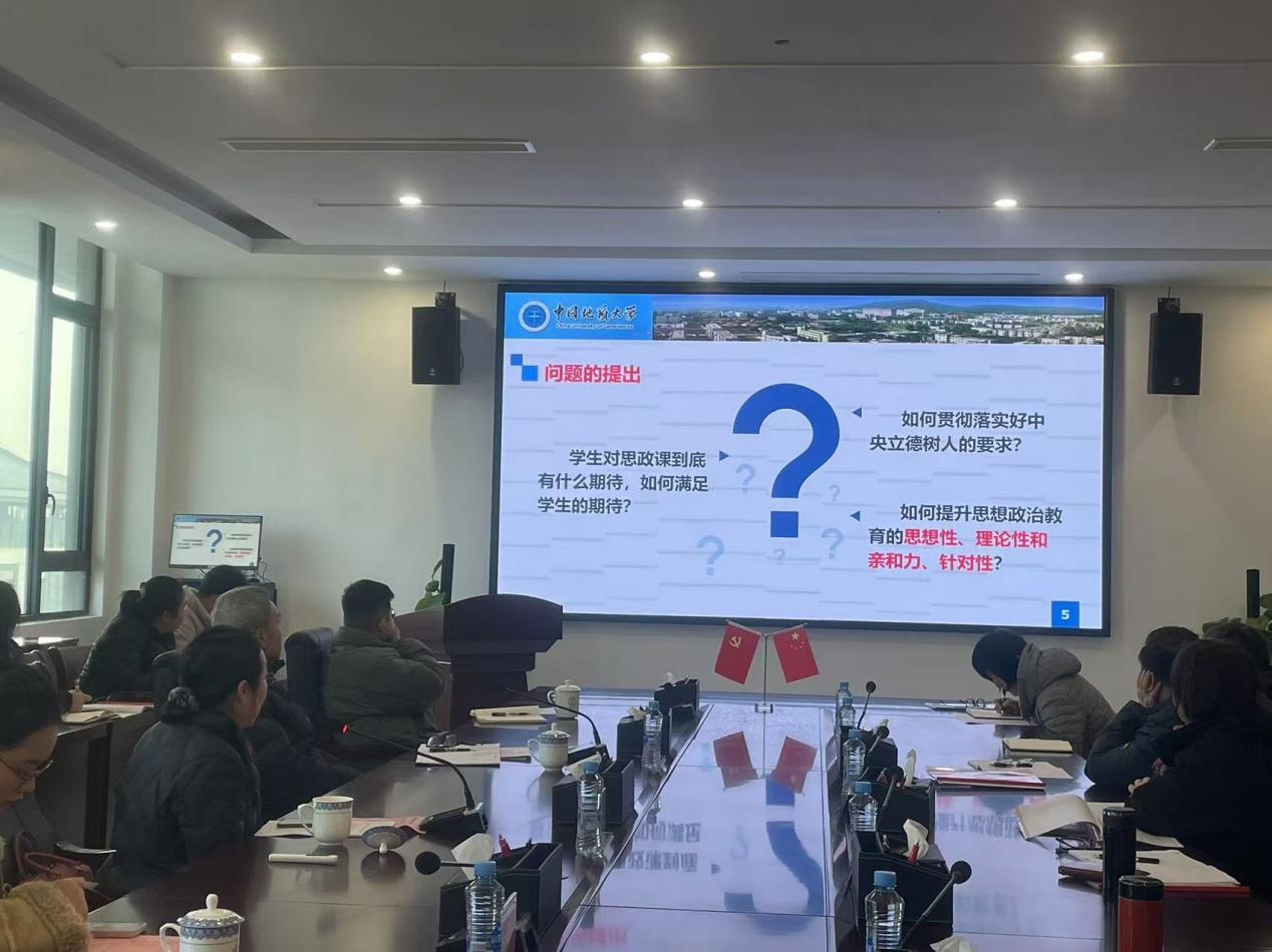 12月18日,中国地质大学博士导师、原马克思主义学院院长高翔莲教授作了《高校思政大课的建设与创新》专题讲座。她着重分享了中国地质大学(武汉)“一线二红三实”的思政课立体教学模式改革情况。所谓“一线”即建设“马克思主义基本原理概论”等4门思政课在线课程,所谓“二红”即“红色之旅”、“红色之声”,“三实”即建设思政课实验室、实践基地、实测中心三个教学平台。“一线二红三实”教学模式将在线教学、课堂教学和实践教学深度结合在一起,使得教师和学生两个主体之间相处的更加融洽,更加享受教学的过程。通过“红色之声”和“红色之旅”的行为体验,加深学生们对思政课的理解,更好的落实高校立德树人的目标。同时,高教授还就如何进行思政课创新等问题与老师们分享了许多宝贵的经验和启示。