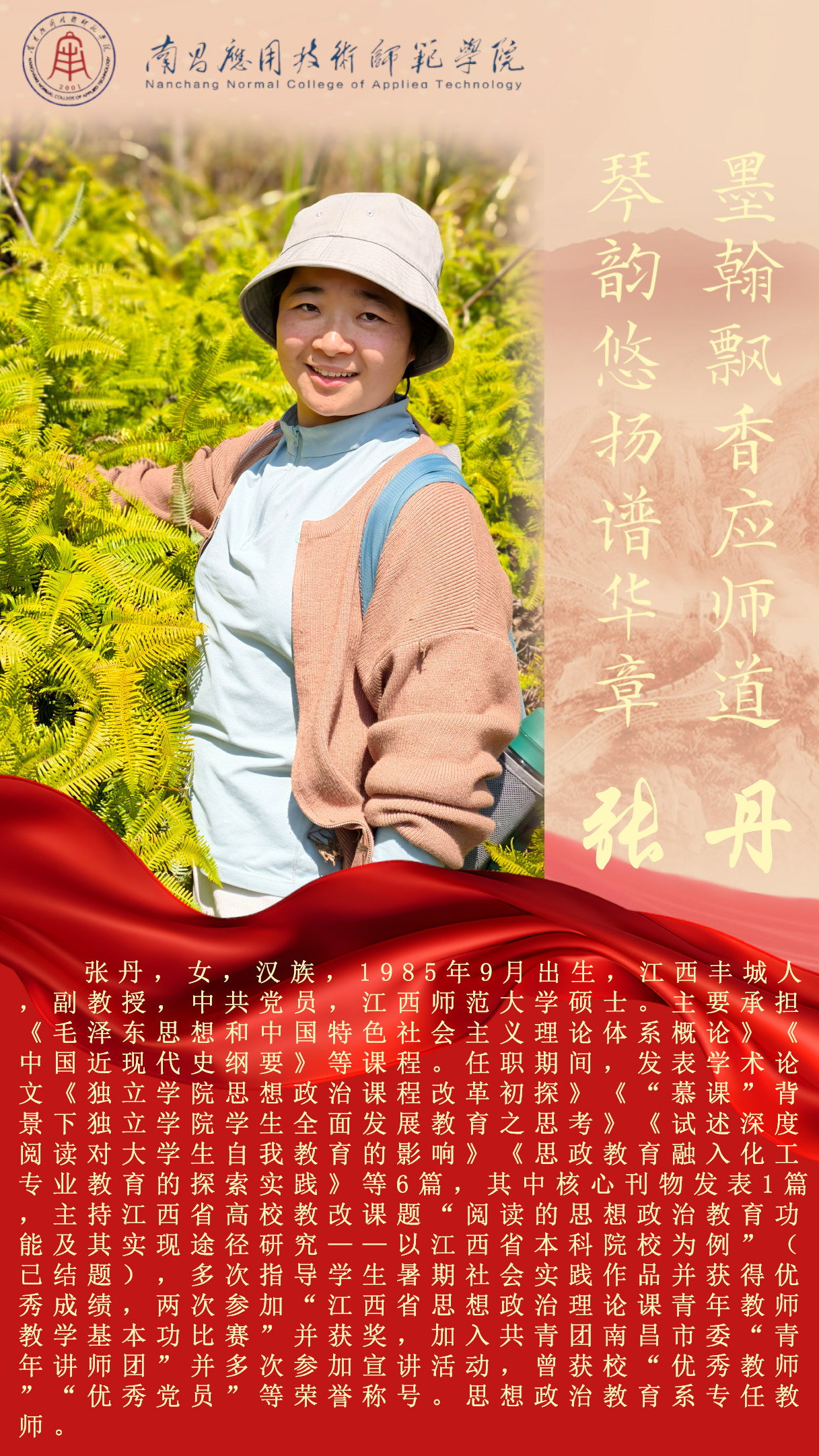 先进典型 优秀毕业生 优秀在校生 优秀教职工 您现在的位置是:首页 > 先进典型 > 优秀教职工 张丹 副教授 综合办2025-04-021767 上一篇 桂光泽 副教授 下一篇 敬业育人 默默奉献|优秀教师刘德彰