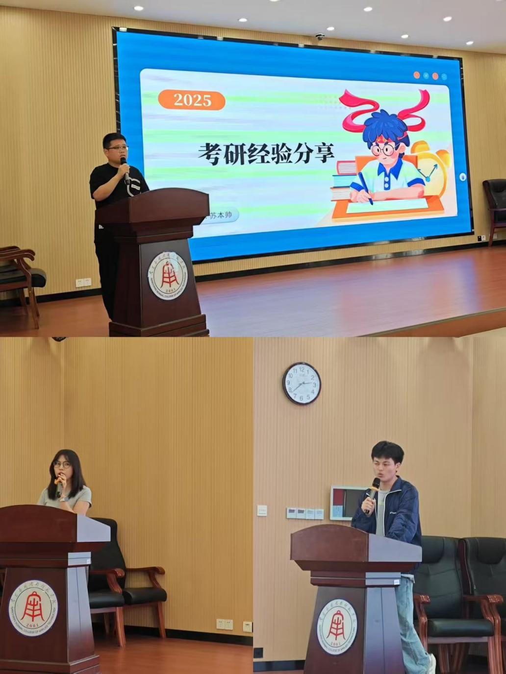 在经验分享环节,朱子健详细解析考公备考策略。他从岗位选择、行测模块化训练到申论写作逻辑,结合自身备考经历,提出“真题精练+时政积累”的双轨模式,并建议利用碎片化时间进行知识积累。法学专业刘淑婷聚焦考研备战,强调“院校梯度选择”与“专业课体系化复习”的关键性。她以自身跨校上岸经验为例,要合理规划考研时间不要与他人攀比,劳逸结合。思政专业苏本帅则从跨考视角出发,在考研过程中,很容易产生放弃的想法,建议考生一定要调整好心态坚持备考并提醒考生报考院校的公众号以及报考流程等