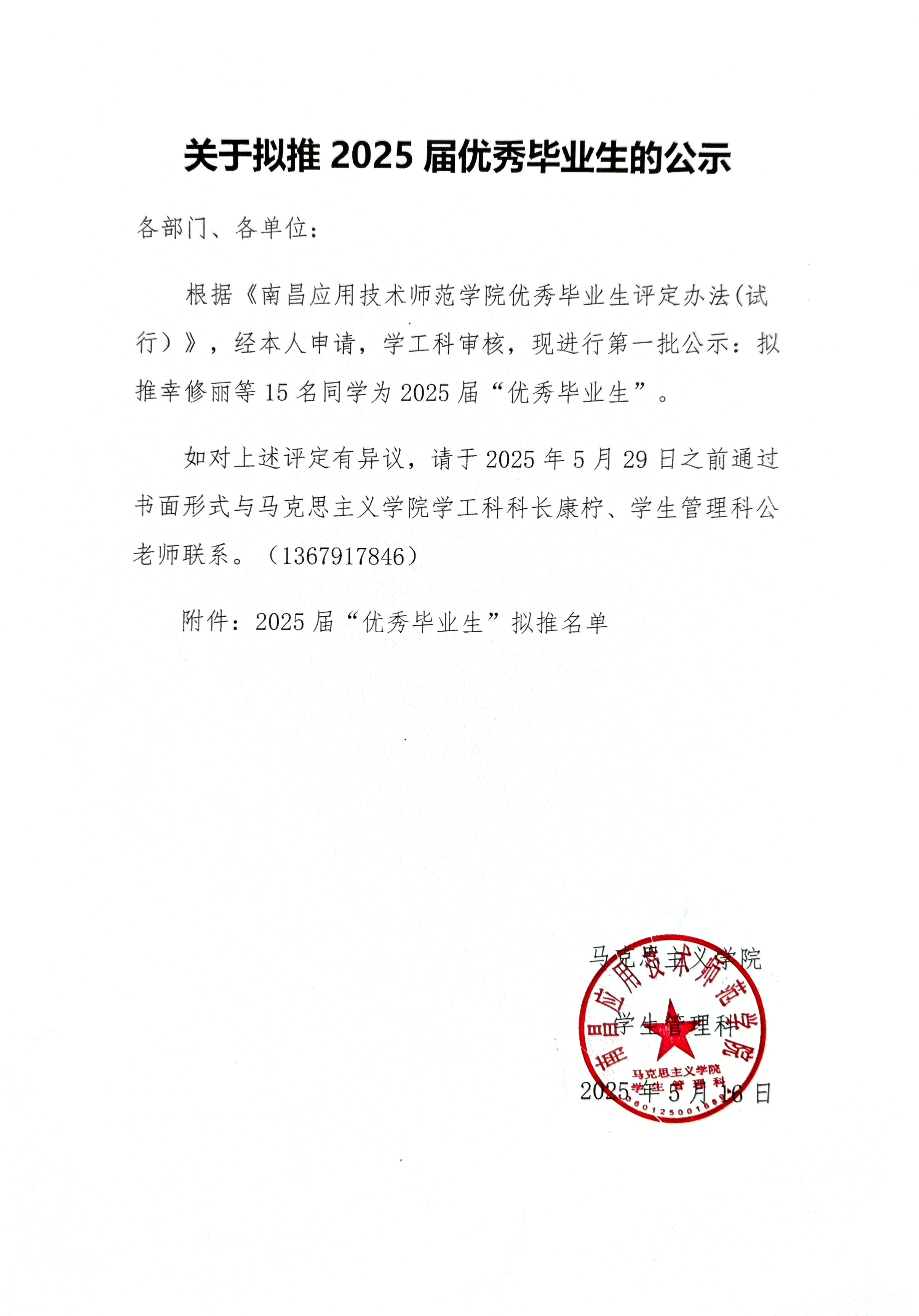 学团建设 团委活动 学生工作 您现在的位置是:首页 > 学团建设 > 学生工作 关于拟推2025届优秀毕业生的公示 管理员2025-05-161446 上一篇 同频共振破困局 “书记讲道理”助力学生解锁成长密钥 下一篇 “查隐患、强整改、护安全——马克思主义学院开展宿舍消防专项检查”