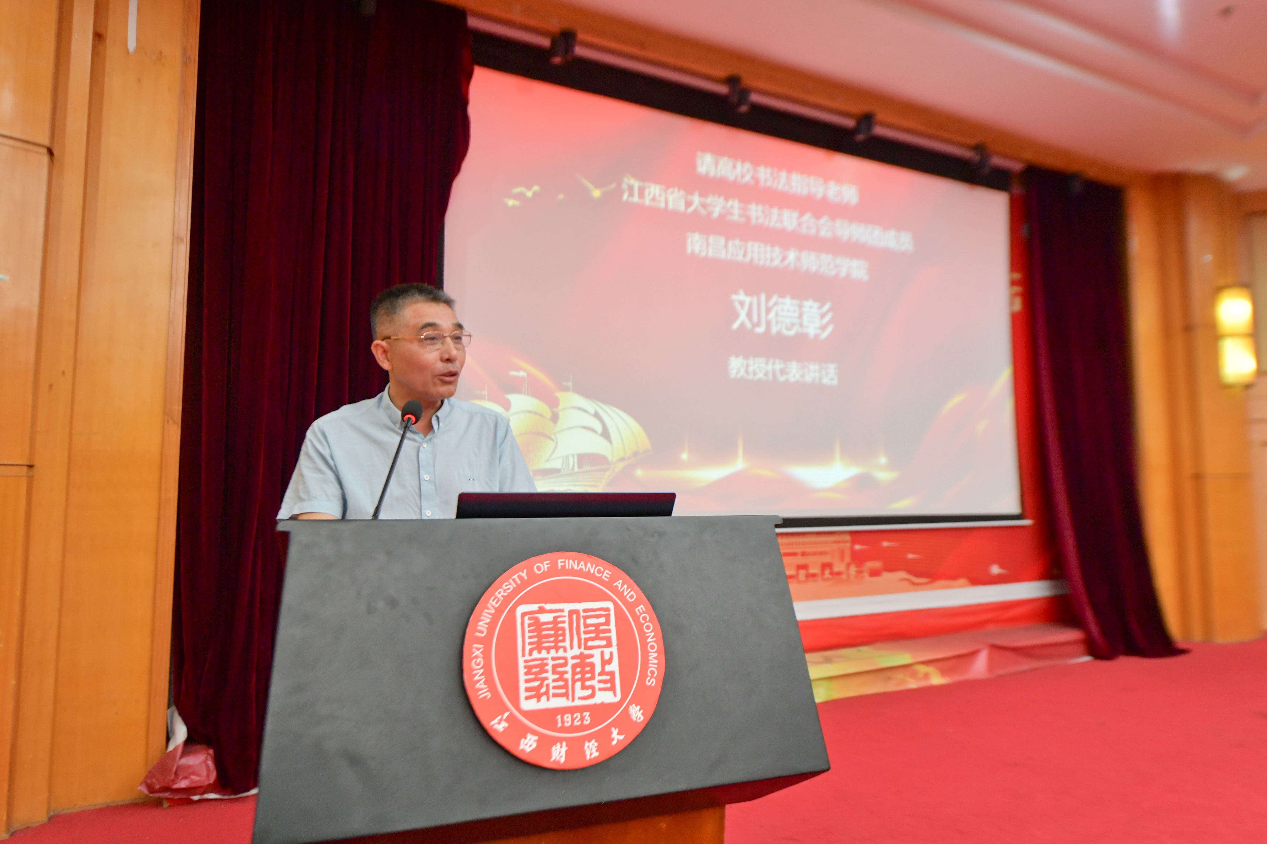 伟德官网副院长、学校兰亭书法协会指导老师刘德彰受邀发言并颁奖。刘德彰介绍了学校兰亭书法协会发展,并解读了“字如其人”的含义:优秀的作品,不仅表现了对优秀传统文化的继承,更应该是作者自身道德情操的体现,要从书法学习中提高了自身的素养,既要字品,更要人品。