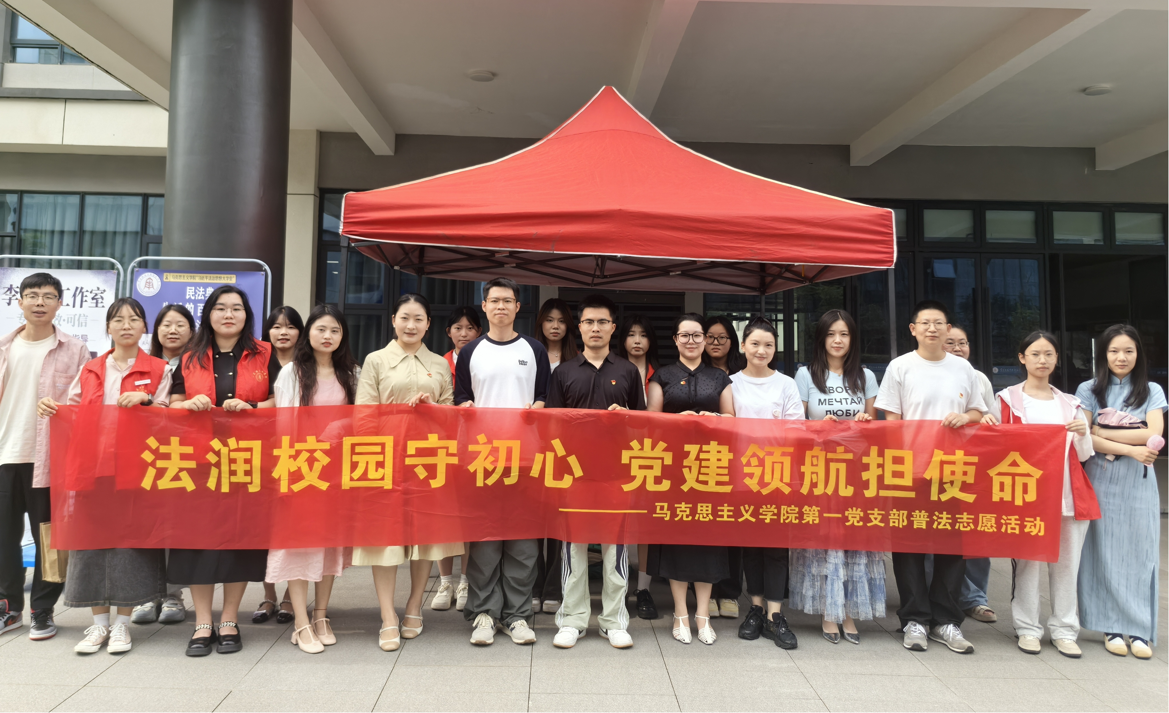 为深入贯彻落实习近平总书记法治思想,强化党建引领,增强师生法治观念。5月27日下午,马克思主义学院第一党支部将党日活动与普法工作紧密结合,开展了以“法润校园守初心,党建领航担使命”为主题的普法志愿活动。此次党日活动旨在通过丰富多样的普法形式,让法治精神在校园中生根发芽,为构建和谐、法治的校园环境贡献力量。