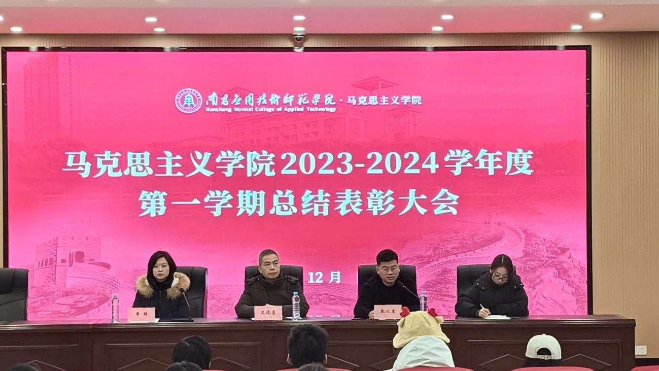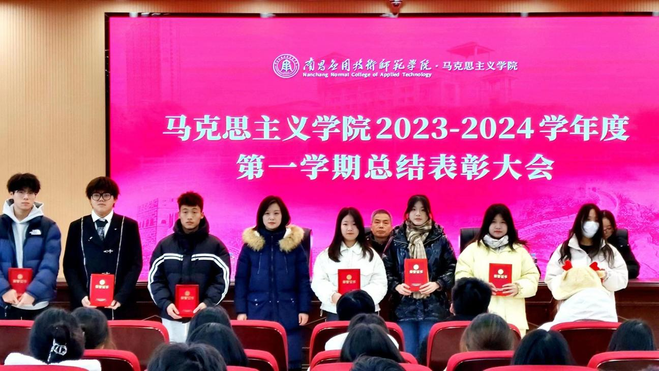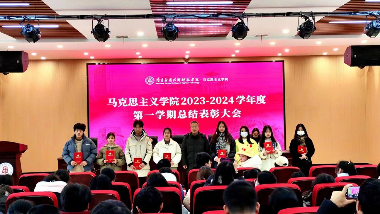 为激励学生诚笃勤勉、知行合一,努力取得更好的成绩,马克思主义学院于2023年12月19日在教学楼2312教室召开2023-2024学年度第一学期总结表彰大会,对本学期表现突出的先进集体(团队)和优秀个人予以表彰。马克思主义学院院长文道贵、党总支书记张欣康、党总支副书记李婷、学生科科长康柠出席大会,并为获奖集体代表和师生颁奖。本次大会由团委老师胡琛主持,获奖学生代表及马克思主义学院团总支第二届学生会全体成员参加大会。