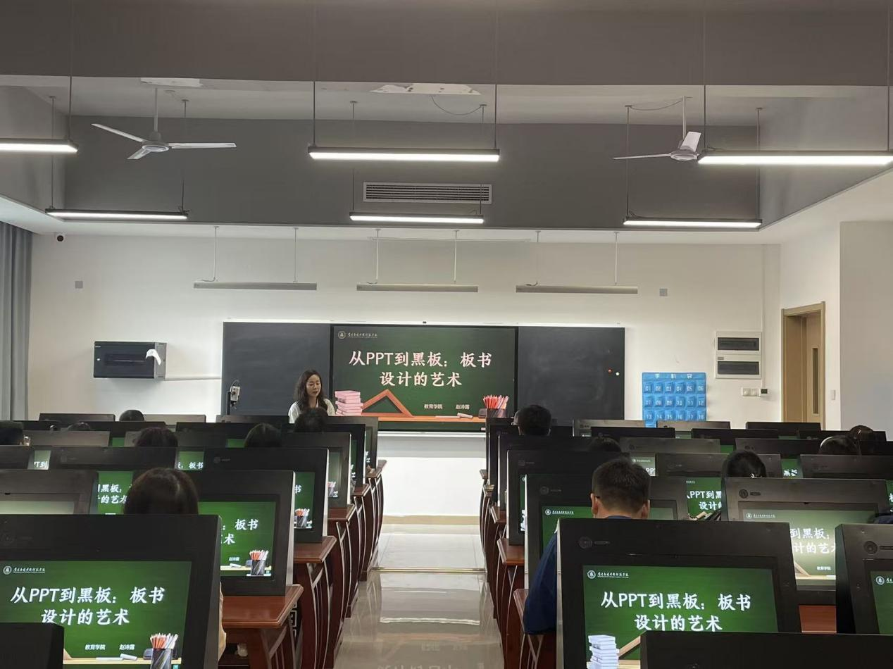 为进一步夯实教师教学基本功,推动课堂教学质量持续优化,9 月 30 日下午,教育学院赵诗露老师在沁苑十实 408 教室为全院教师带来一场主题为 “从 PPT 到黑板:板书设计的艺术”的课堂教学板书技能经验交流会。马克思主义学院副院长刘德彰、院长助理杨志明以及全体专任教师参会,会议由学院教务科负责人李文静主持。