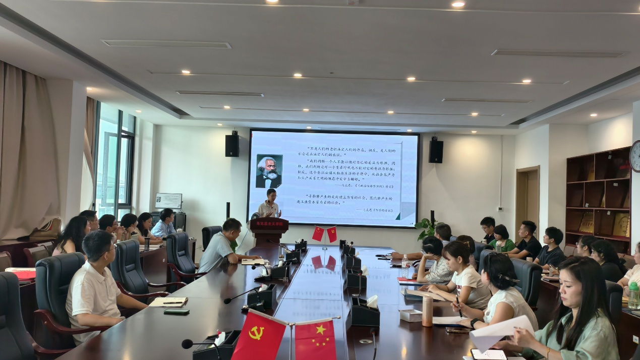 2025年9月23日下午,马克思主义学院思想政治教育公共课教研室开展了《马克思主义基本原理》课程的集体备课会,本次备课会由思想政治教育公共课教研室张遵攀老师进行了题为“马原课程中的哲学问题辨析”的备课思路分享,邀请了学院各系、教研室老师参与交流讨论,副院长刘德彰、院长助理杨志明应邀出席并进行指导。