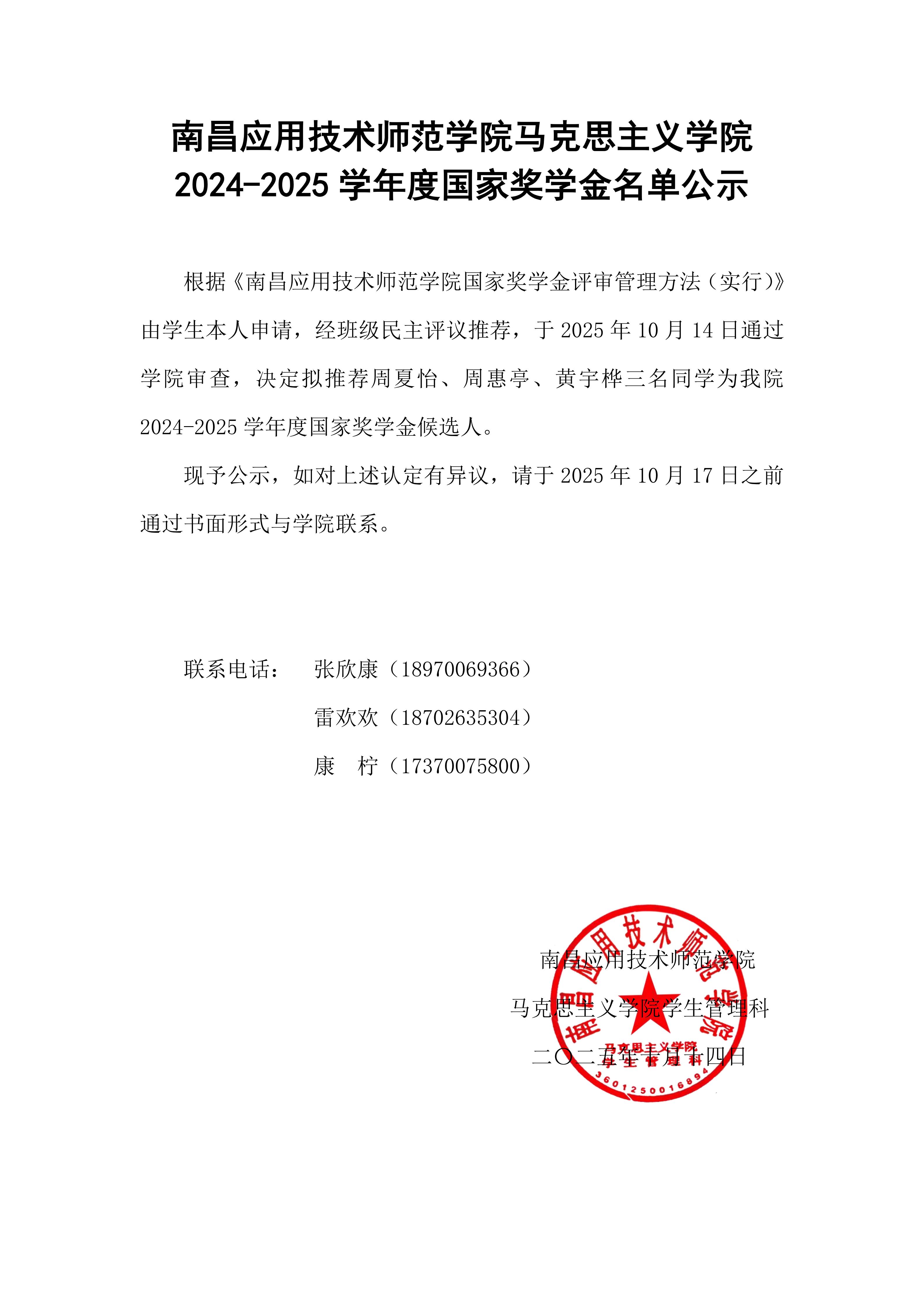 首页栏目 通知公告 学院新闻 习近平思想学习专栏 主题教育学习 院长书记信箱 您现在的位置是:首页 > 首页栏目 > 通知公告 BV伟德官方网站马克思主义学院2024-2025 学年度国家奖学金名单公示 管理员2025-10-14194 上一篇 关于将李欢等4位同志列为发展对象人选的公示 下一篇 关于将李欢等4位同志列为发展对象人选的公示