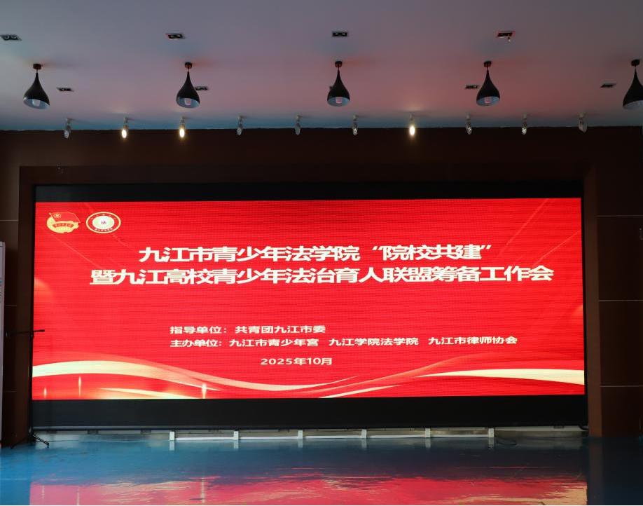 2025年10月22日下午,九江市青少年法治校地共建联盟会议在市少年宫成功举行,九江市团市委领导、市青少年宫领导、九江律师协会领导、九江市驻高校法学教师代表出席会议。我校马克思主义学院法学系主任龚三妹及李水根老师参会。