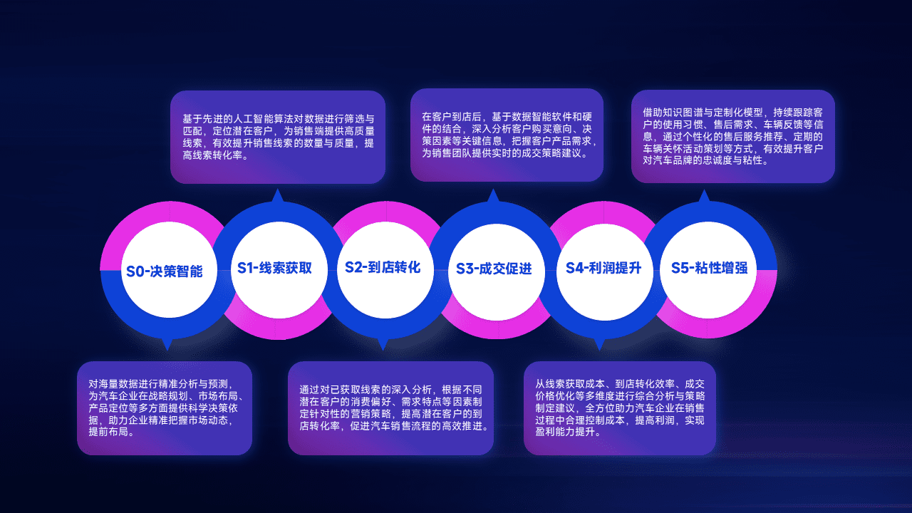 通过拓宽潜在客户来源、、优化线索分配并提高到店转化率,,,,以增强销售效率。。。同时,,利用线索数据不断优化分析模型,,有效提升转化率,,扩大营销影响力。。。